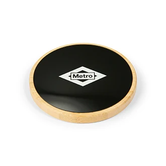 Cargador inalámbrico compatible con dispositivos preparados para este tipo de carga. Retroiluminado, con detalles de bambú y una velocidad de carga de 15mAh.
